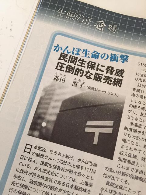かんぽ生命上場に際して、民間生保が受ける影響、などについて記事を書いてます。