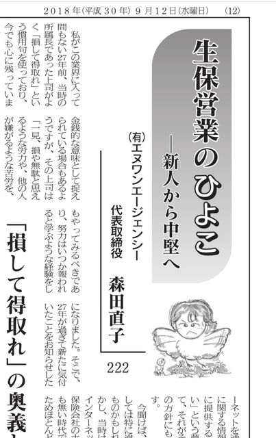 11年続く連載で現在も月2回掲載中コラム「生保営業のひよこ」。業界の皆様是非読んでネ